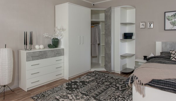 Угловой шкаф выполнен в стиле минимализм – строгие линии, идеальные пропорции, отсутствие декора. Все варианты цвета корпуса и фасадов подобраны в нейтральных сочетаниях, они универсальны для любого стиля интерьера, их можно сочетать со множеством ярких и насыщенных оттенков, а с помощью смены цветных текстиля и аксессуаров - полностью преображать пространство. Зеркало на фасаде визуально добавляет света и простора. Шкаф позволяет рационально использовать пространство и будет хорошо смотреться даже в небольшой комнате, служит связующим звеном для составления угловой системы хранения. Идеально компонуется со всеми модулями системы Аврора. Мебель выполнена из высококачественных материалов.