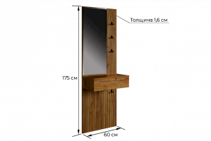 Принт, имитирующий вертикальную фрезеровку, придает зеркалу уникальный и современный вид, добавляя текстуру и глубину. Материал каркаса – ЛДСП, что обеспечивает прочность и долговечность, а также легкость в уходе.