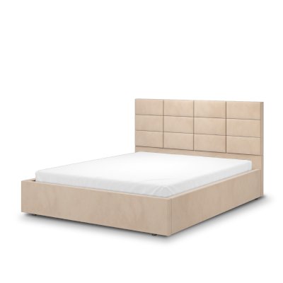 Высокое изголовье деркорировано разделителями на прямоугольники - 12 шт. разного размера в зависимости от ширины кровати.
