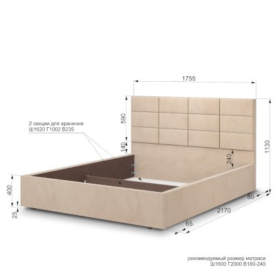 Кровать со спальным местом 160х202 см: