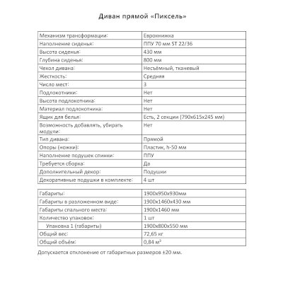 Диван Пиксель (Аквилон) - за 30 305 руб. в Кирове. Купите на сайте mebelmarket-kirov.ru или по телефону 8(800)505-30-63 уже сегодня! Уточнить наличие, комплектацию, актуальную цену можно бесплатно у менеджера ежедневно. Закажите Диван Пиксель (Аквилон) до конца акции! Доступна покупка в кредит, рассрочку. Доставим со склада или на заказ.