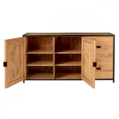 2 двери, 2 ящика. За дверцами полки.