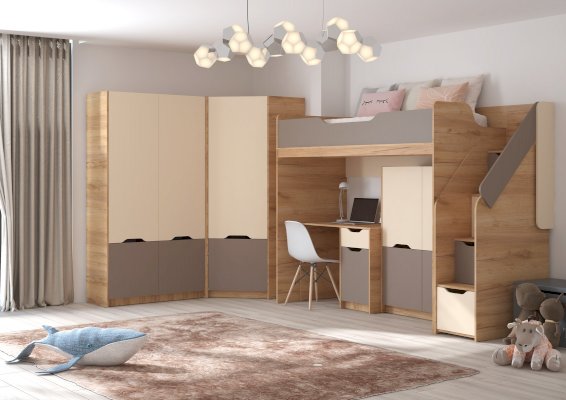 Цвет бежевый / голубой / дуб (сонома, молочный, феррара) / коричневый / серый