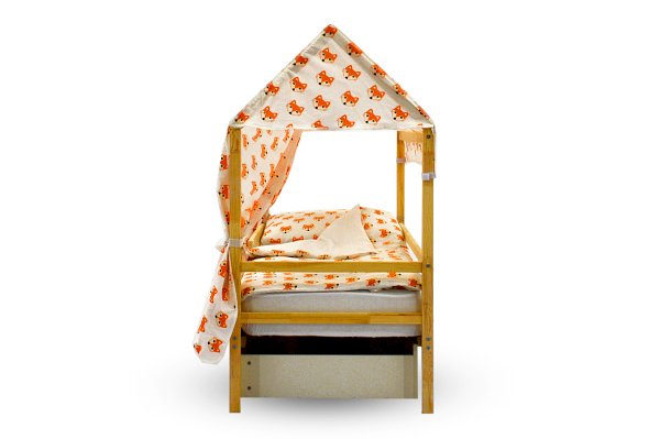 Крыша выполнена из бязи – это нежный, мягкий и гипоаллергенный материал, который абсолютно безопасен и приятен на ощупь, чтобы вашему крохе было максимально комфортно играть днем и отдыхать ночью. Материал не имеет никаких посторонних запахов, отличается прочностью и износоустойчивостью, выдержит много стирок, при этом рисунок не потеряет свою яркость и привлекательность.