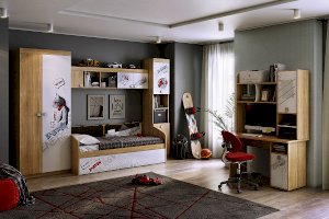 Удобный и функциональный шкаф позволит разместить много полезных вещей, как в открытых нишах, так и в закрытых. Эффектный принтерный рисунок на фасадах выдержан в общем стилистическом решении. Рисунок устойчив к истиранию и ультрафиолету.