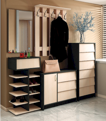 Интро - это целая серия мебели, с помощью которой вы можете обустроить прихожую. В серии представлены обувницы разных размеров с откидными створками, шкаф, зеркало, вешалки.